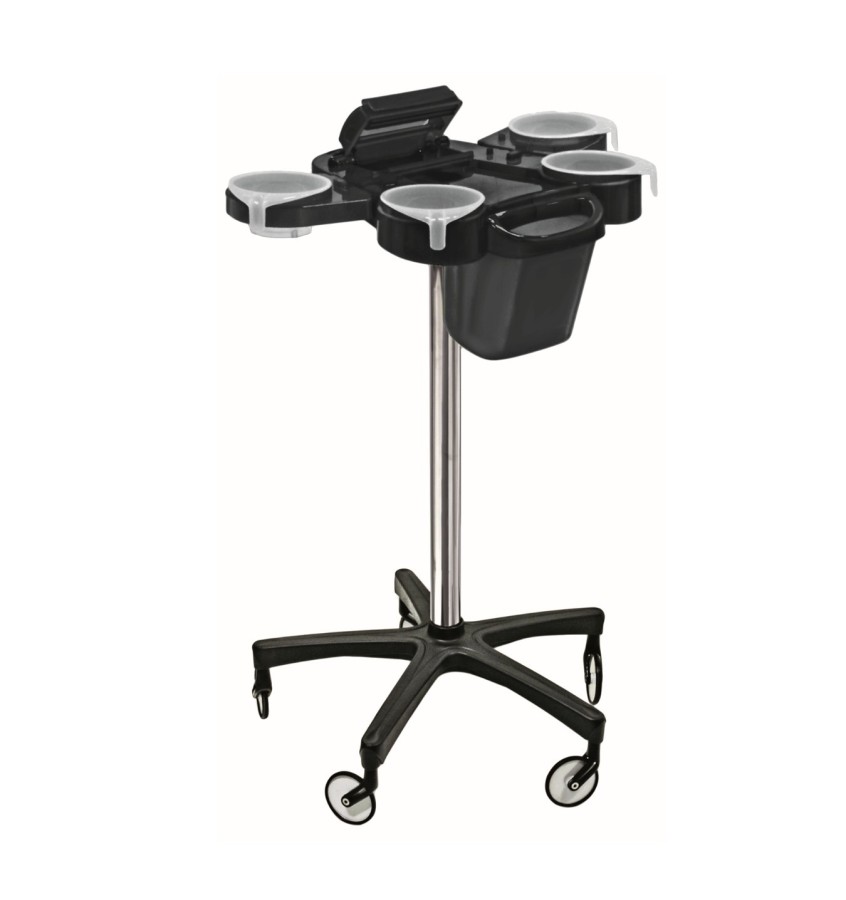 Wózek techniczny wykonany jest z wysokiej jakości tworzywa, które gwarantuje długą żywotność tego produktu. Posiada 4 wyjmowane pojemniki, miejsca na grzebienie i szczotki oraz inne akcesoria. Oprócz tego ma wbudowaną obcinarkę do folii aluminiowej. Wózek jest wyposażony w nowoczesne kółka NO-HAIR Wheels, które są odporne na zabrudzenia i posiadają system zapobiegający wkręcaniu się włosów w łożyska.