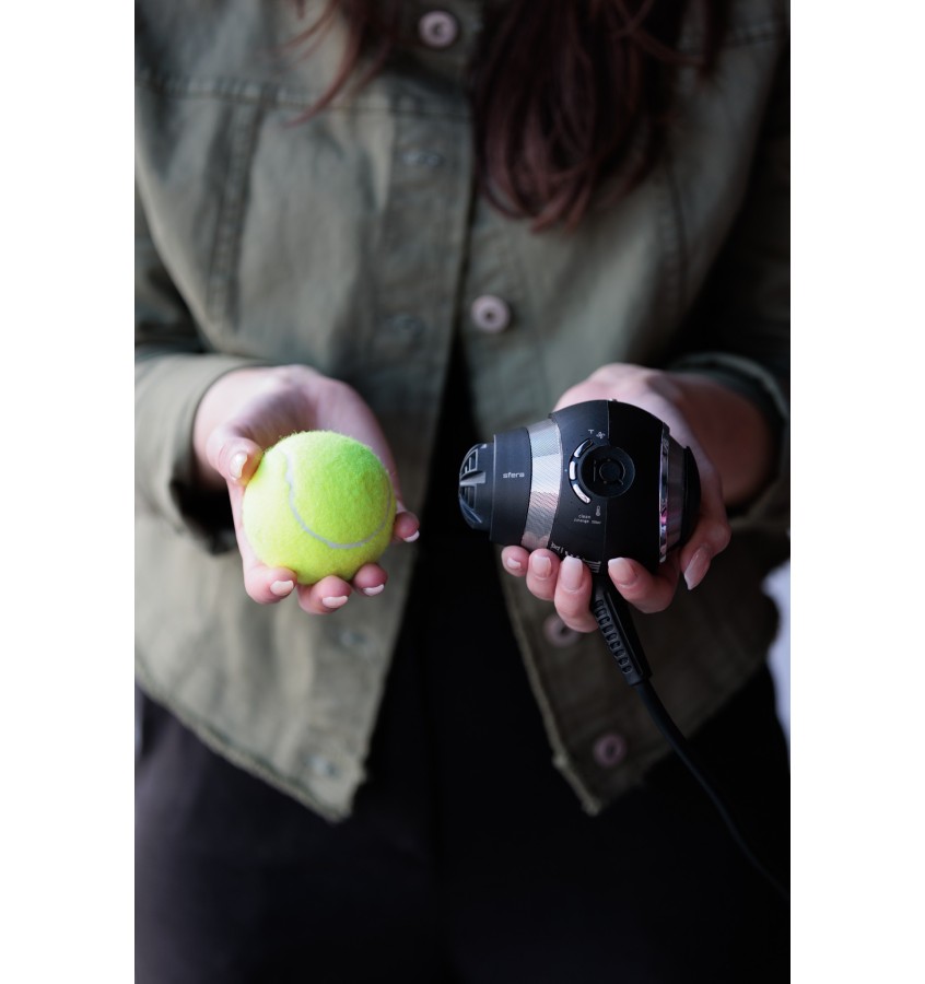 Rewolucyjna i kompaktowa suszarka do włosów GA.MA IQ Sfera z inteligentnym silnikiem bezszczotkowym. IQ Sfera to wyjątkowa konstrukcja przypominająca piłkę tenisową – suszarka jest mała, lekka, kompaktowa i ergonomiczna oraz posiada mocny silnik. To jedna z najmniejszych profesjonalnych suszarek na rynku.